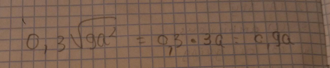 спочатку обчислюємо квадратний корінь, потім обчислюєм добуток і отримуємо 0,9а