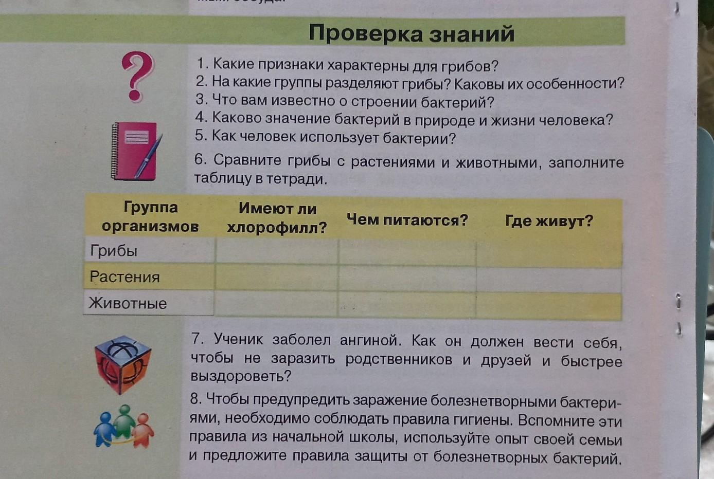 6. Сравните грибы с растениями и животными, заполните таблицу в тетради.