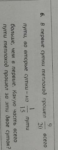 1). Какую часть пути теплоход прошёл за вторые сутки, если из условия задачи известно, что в первые сутки теплоход прошёл 9/20 всего пути, а во вторые сутки – на 1/15 пути больше, чем в первые?