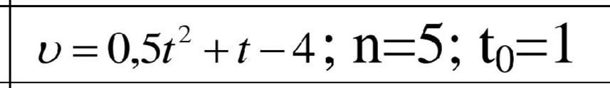 v= f (t) . Визначити переміщення за n секунд починаючи з t0 –