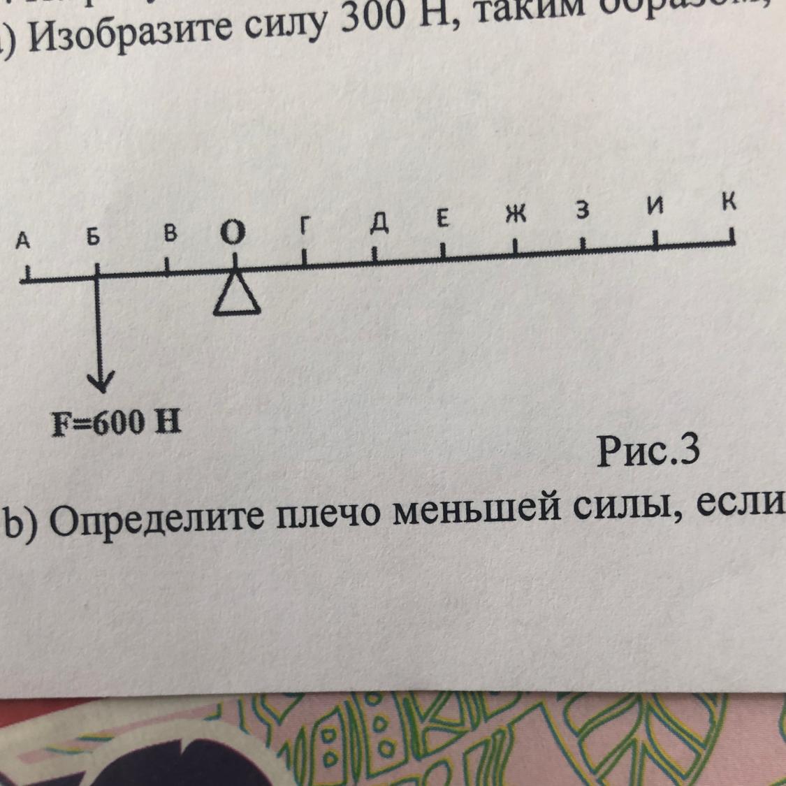 а)Изобразите силу 300н, таким образом, чтобы рычаг находился в равновесии.