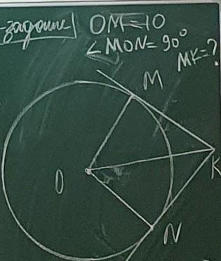 OK делит угол Oпополам так что треугольники становятся равнобедренными, а по теорема Пифагора вычисляет что ответом является кореньиз: 10^2+10^2=200