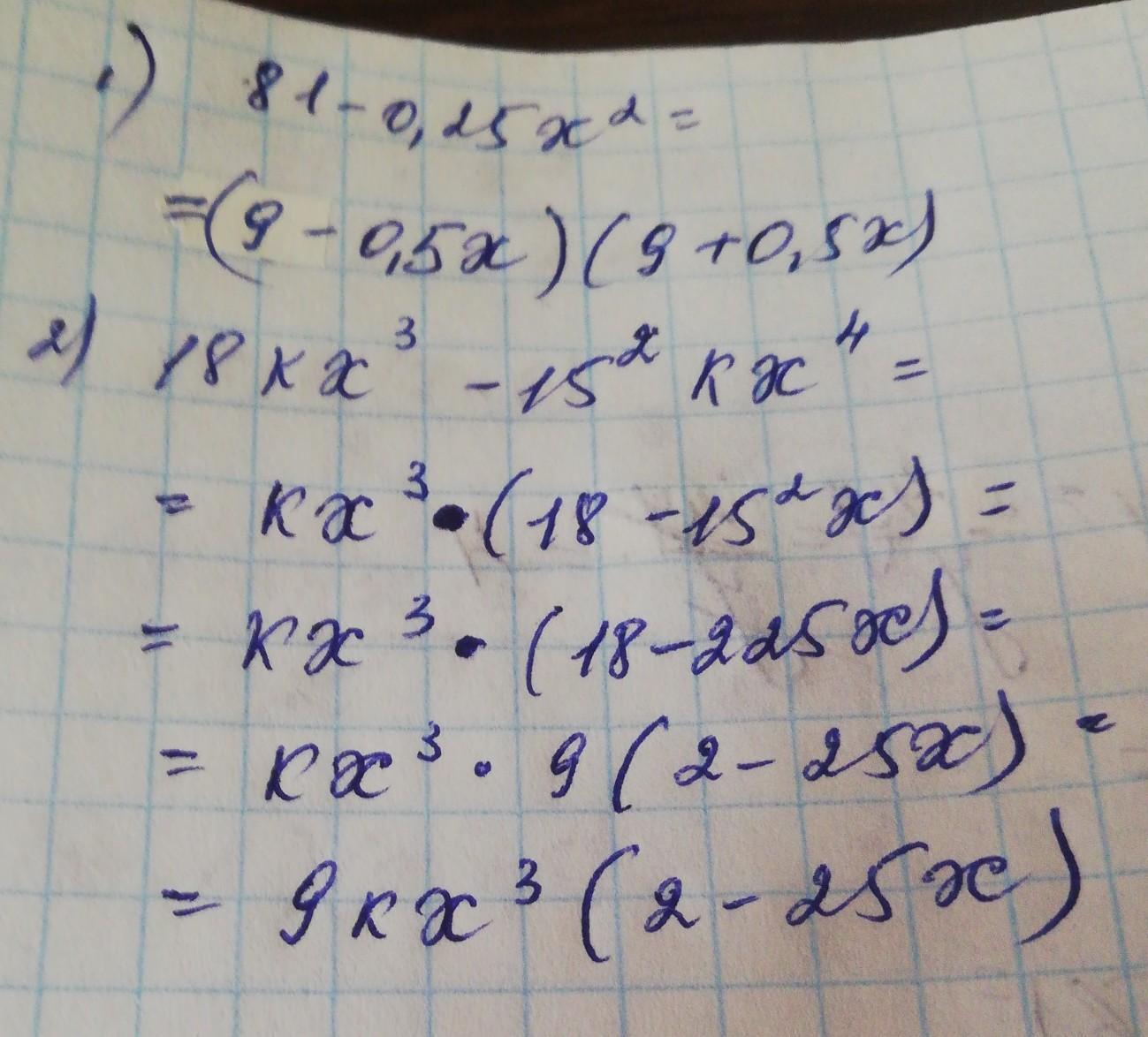 1). 81-0,25х= 81- 1/4х^2= 1/4•(324-х^2)=