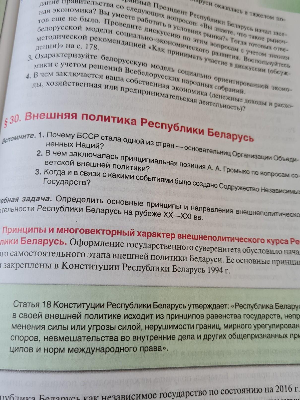 В ст. 18 Конституции Республики Беларусь закреплено: «Республика Беларусь в своей внешней политике исходит из принципов равенства государств, неприменения силы или угрозы силой, нерушимости границ, мирного урегулирования споров, невмешательства во внутренние дела и других общепризнанных принципов и норм международного права. Республика Беларусь ставит целью сделать свою территорию безъядерной зоной, а государство — нейтральным».