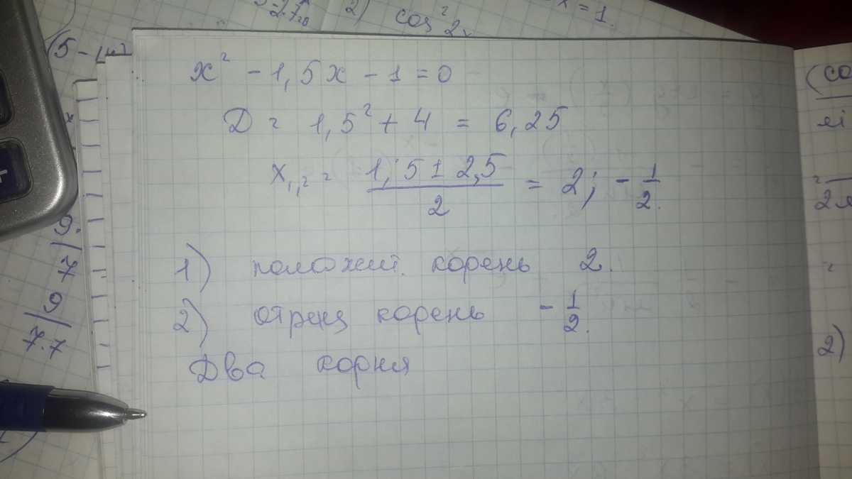 имеет ли уравнение корни и еимеет ли уравнение корни и если имеет, то сколько? укажите знаки корней x^2=1,5x + 1
