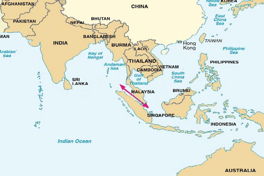 5 Малаккский пролив соединяет Андаманское море Индийского океана с Южно-Китайским морем Тихого океана.