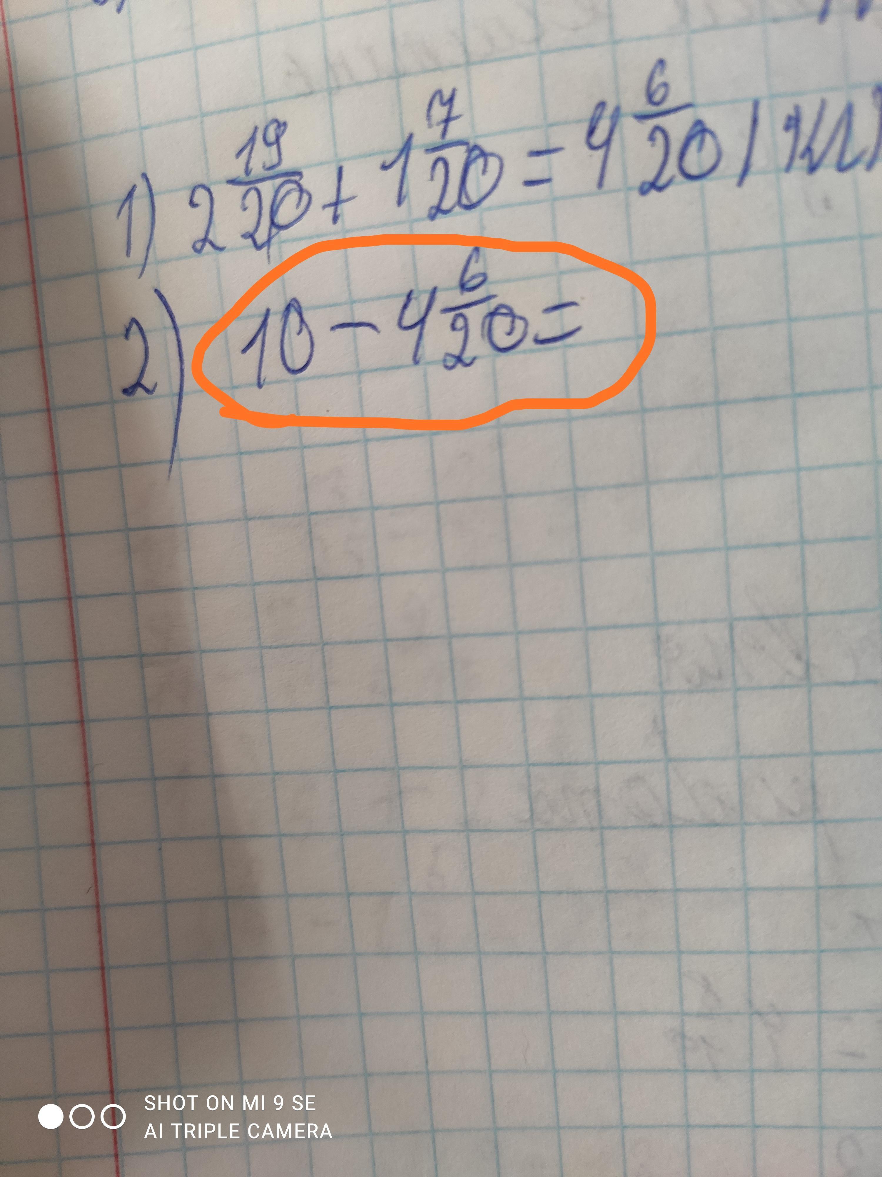 9 20/20-4 6/20 = 5 14/20 = 5 7/10