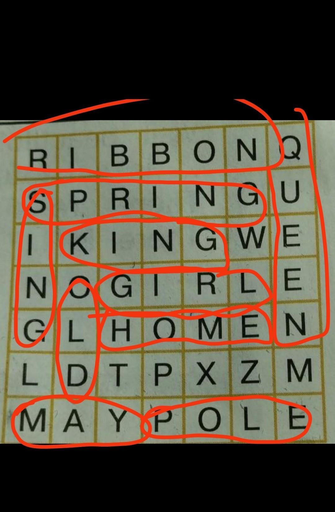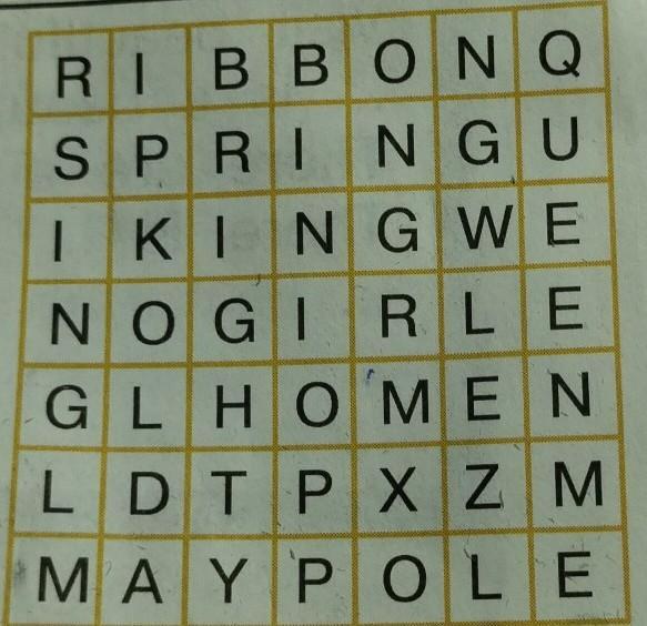 ответ: ribbon,spring,king,girl,home,sing,may,queen,pole,old