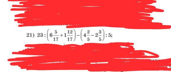 23:(6 5/17+1 12/17) -(4 2/5-2 3/5):5=2