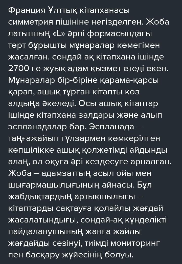 Жазылым 1. Берілген тапсырманы орындаңыз. 2. Қазақ тіліндегі тыныс белгілерінің түрлері мен қызметін дұрыс қолданып, берілген тақырыптан ауытқымай, абзац түрлерін жүйелі құрастырып, көтерілген мәселе бойынша келісу-келіспеу себептерін айқын көрсетіп көлемі 100-110 сөзден тұратын «келісу, келіспеу» эссесін жазыңыз. 1. Техниканың біздің елімізде дамығанына келісесіз бе? 2. Францияның Ұлттық кітапханасында 2700 қызметкер жұмыс жасайтынына келісесіз бе? [10]