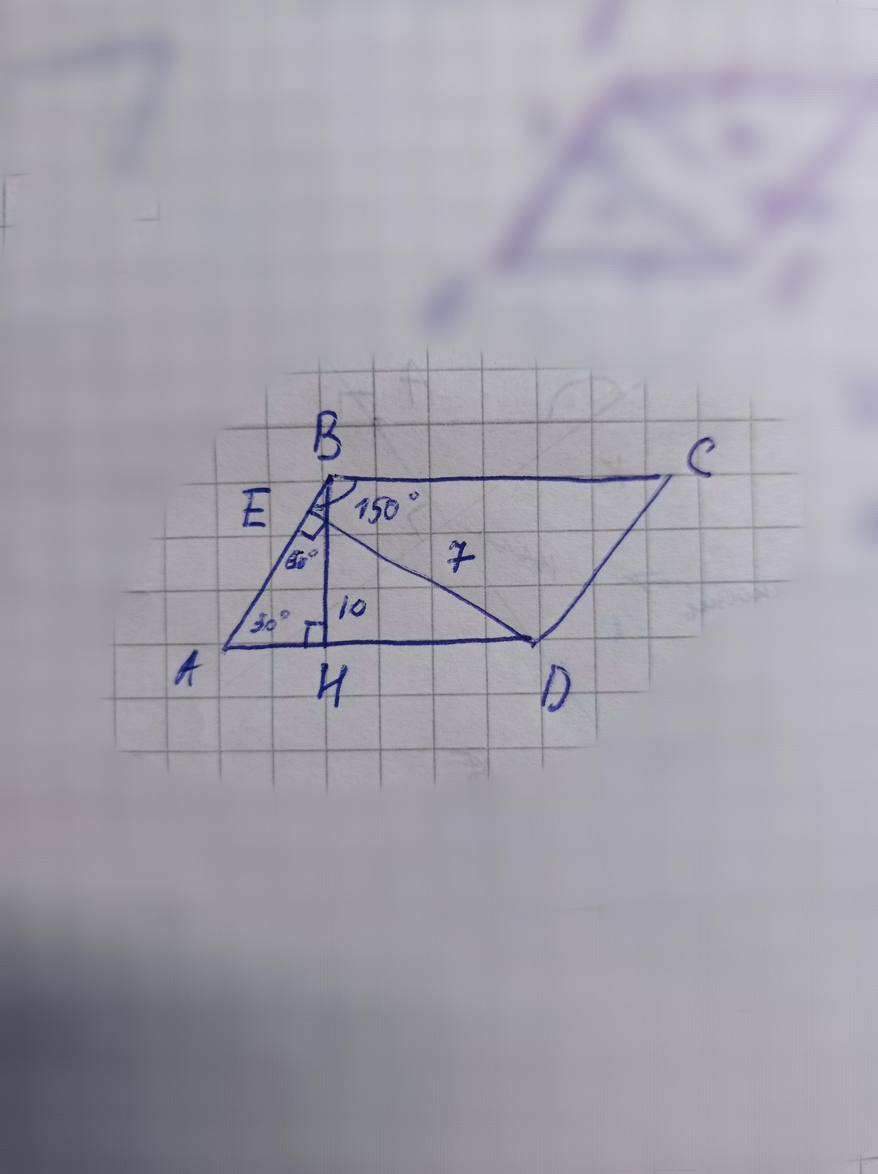/_ A = 30° , значит АВ = 2ВН = 20 см