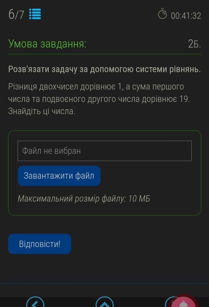 Розв'язати задачу за допомогою системи рівнянь. Різниця двохчисел дорівнює 1, а сума першого числа та подвоєного другого числа дорівнює 19. Знайдіть ці числа.