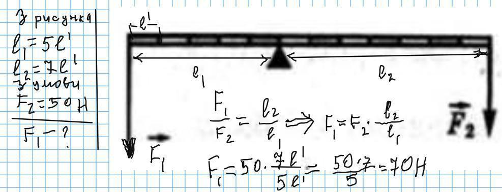 На довге плече важеля (рис.) дiє сила 50 Н. силу, що діє на коротке плече важеля. Важіль перебуває в рівновазі. Визначте