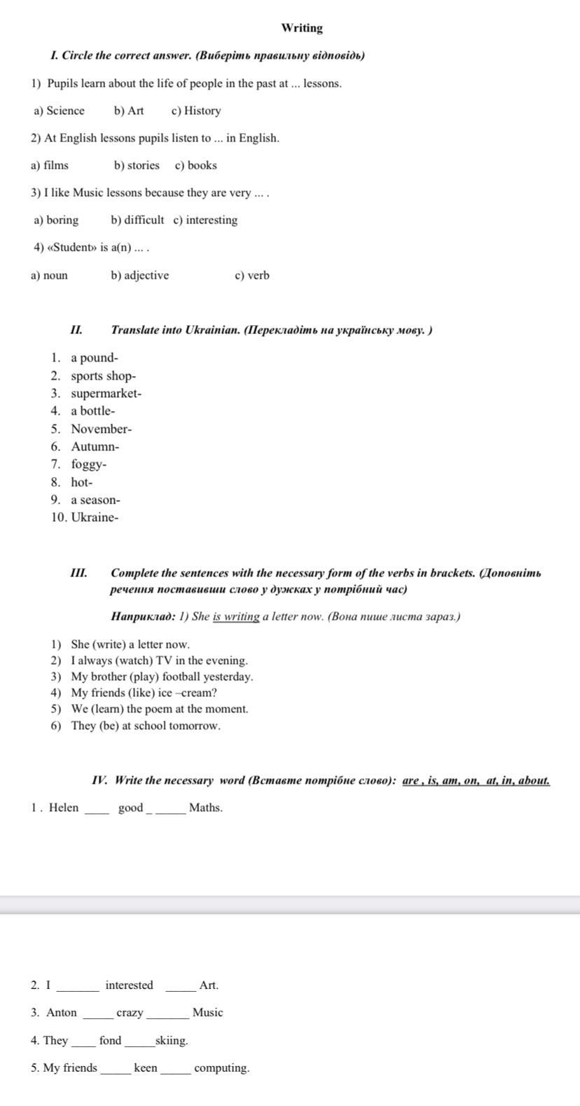 1 а 2 б 3 д 4 а