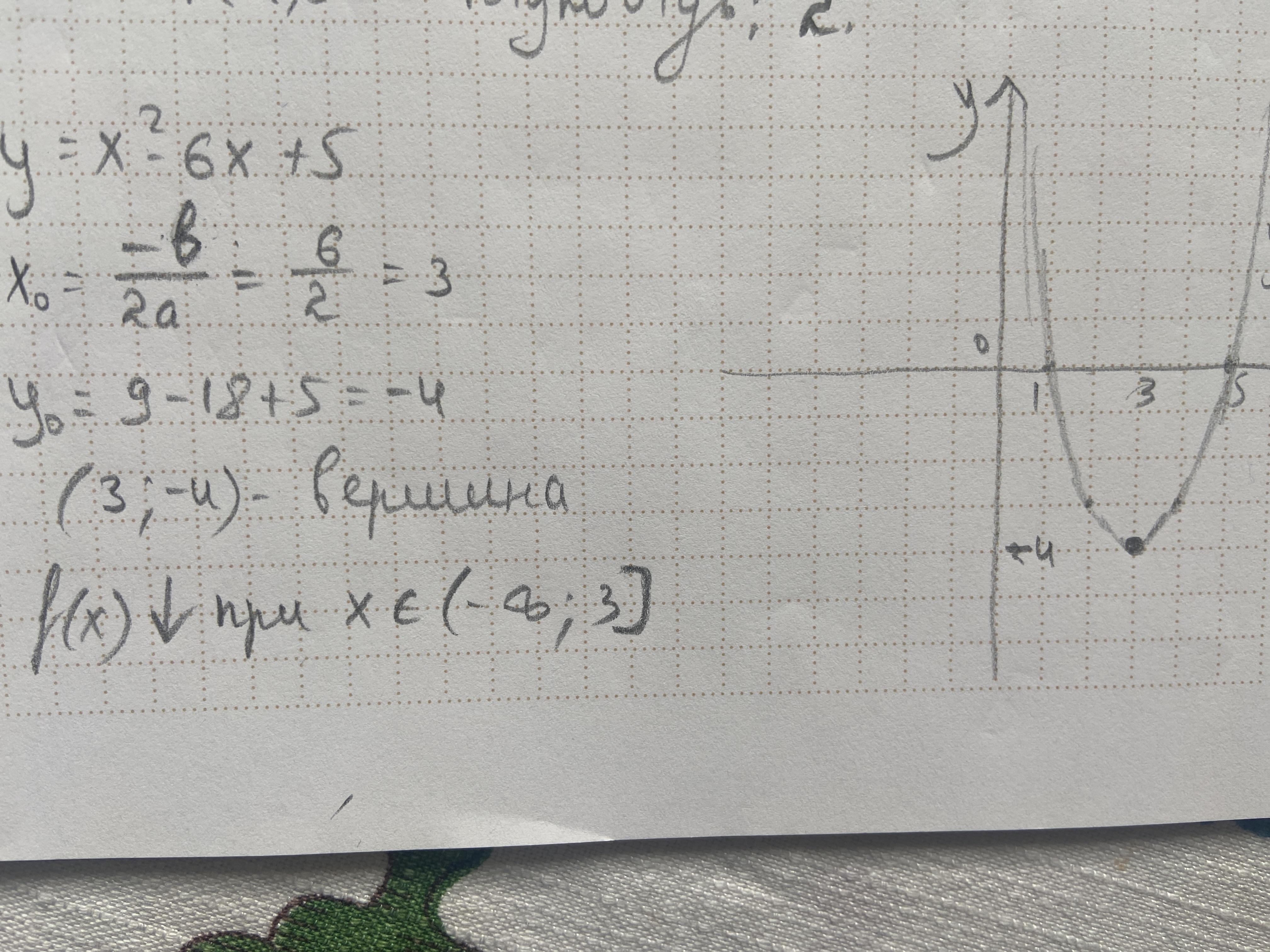 побудуйте графік функції y = x^2 - 6x + 5 користуючись побудованим графіком знайдіть проміжок на якому функція спадає
