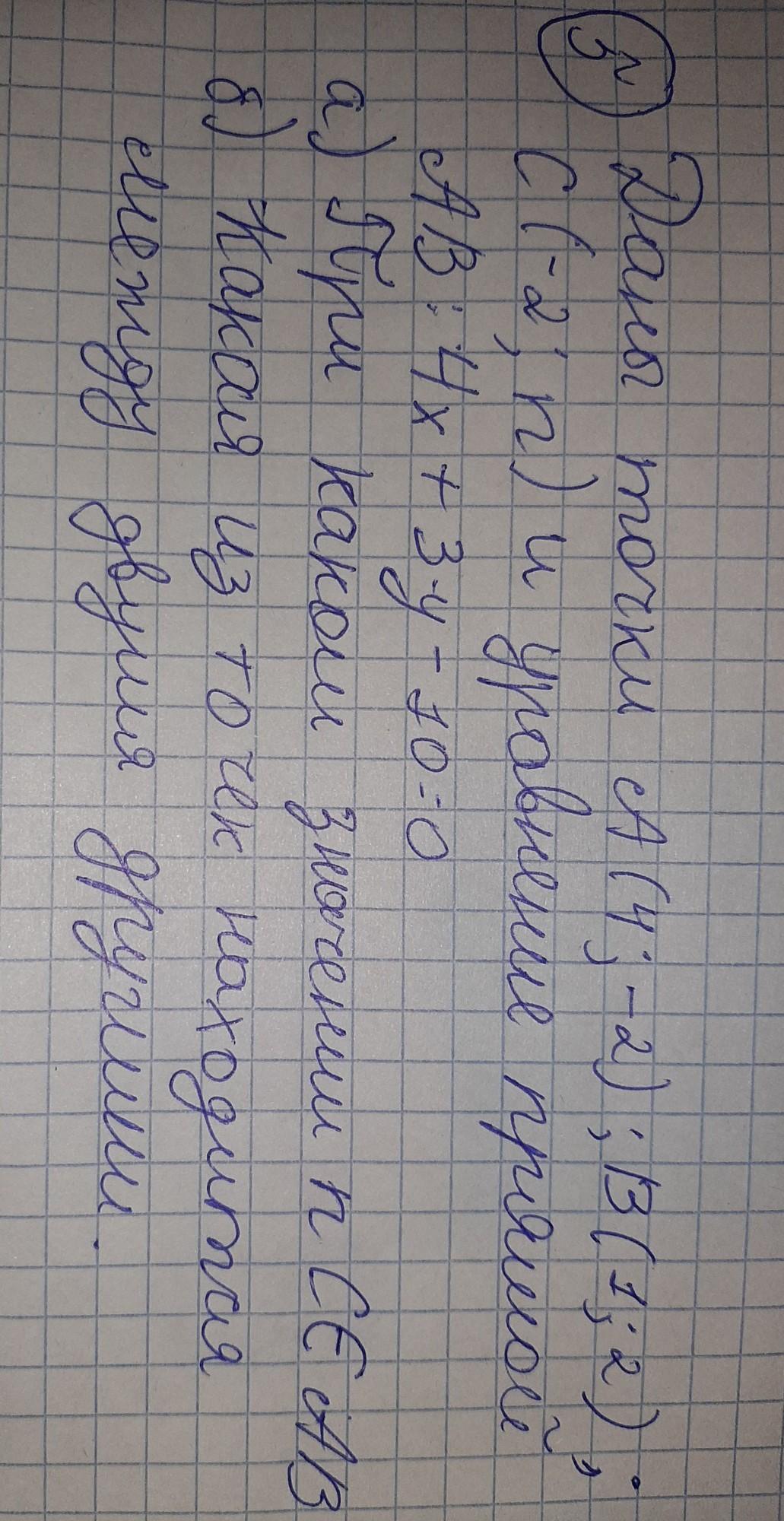ДАНО: А (4; –2); В (1; 2); С (–2; n); уравнение прямой АВ: 4х+3у–10=0