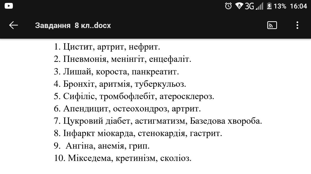 Нет, из каждого рядка выбрать лишнюю болезнь.