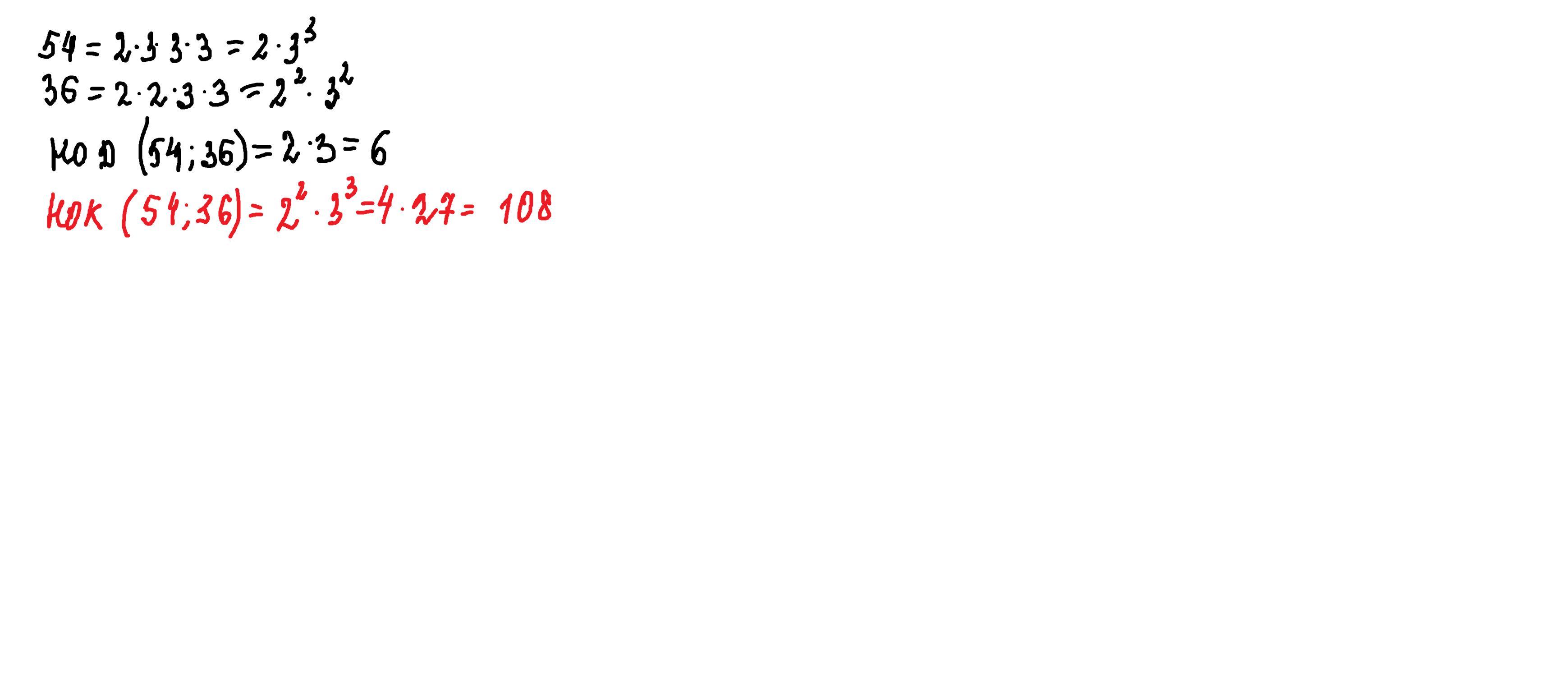 для нахождения НОД записываем произведение общих множителей с наименьшим показателем степени