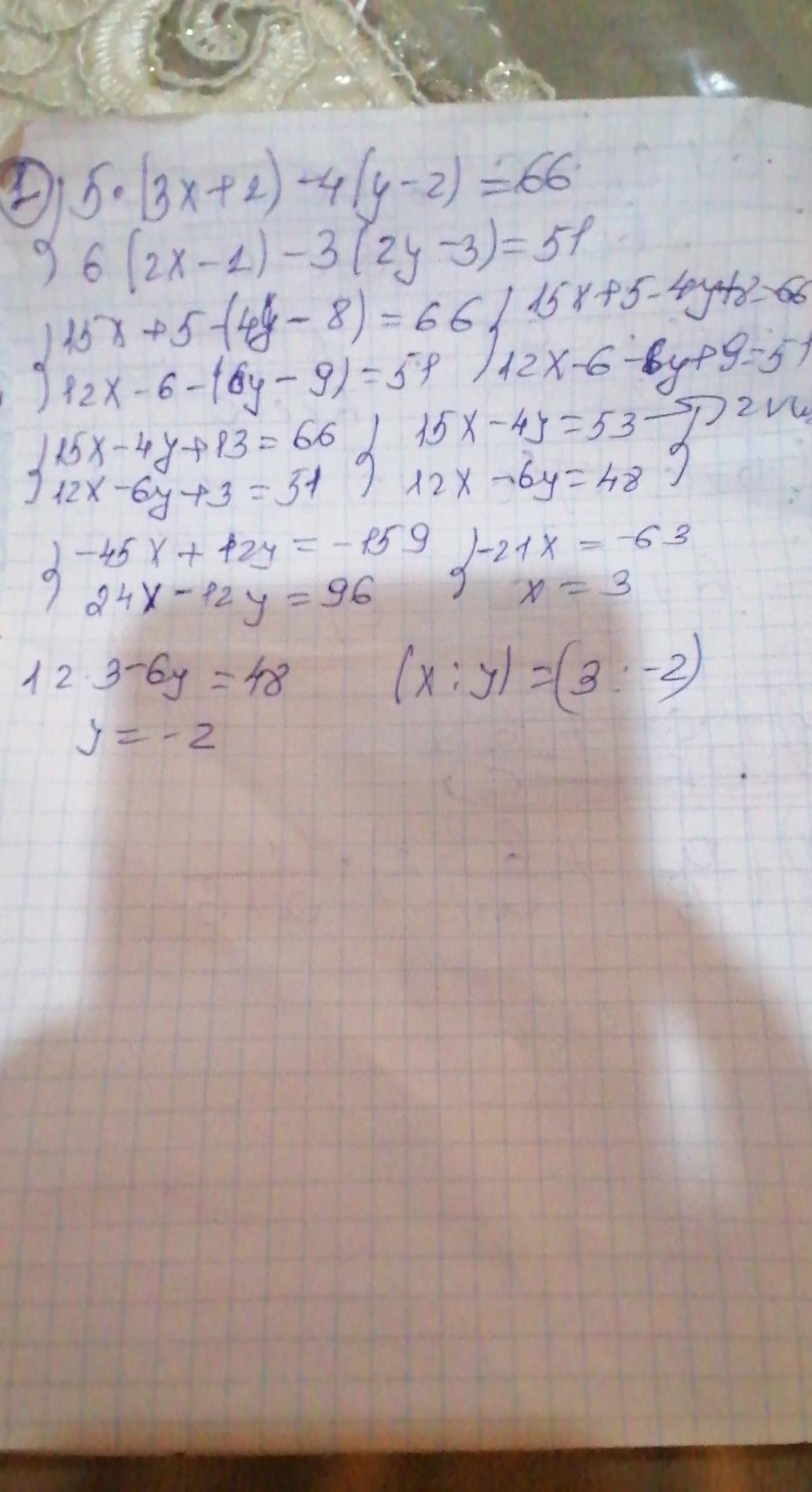 15х+5-4y+8=66 15x-4y=66-5-8 15x-4y=53 15x-4y=53