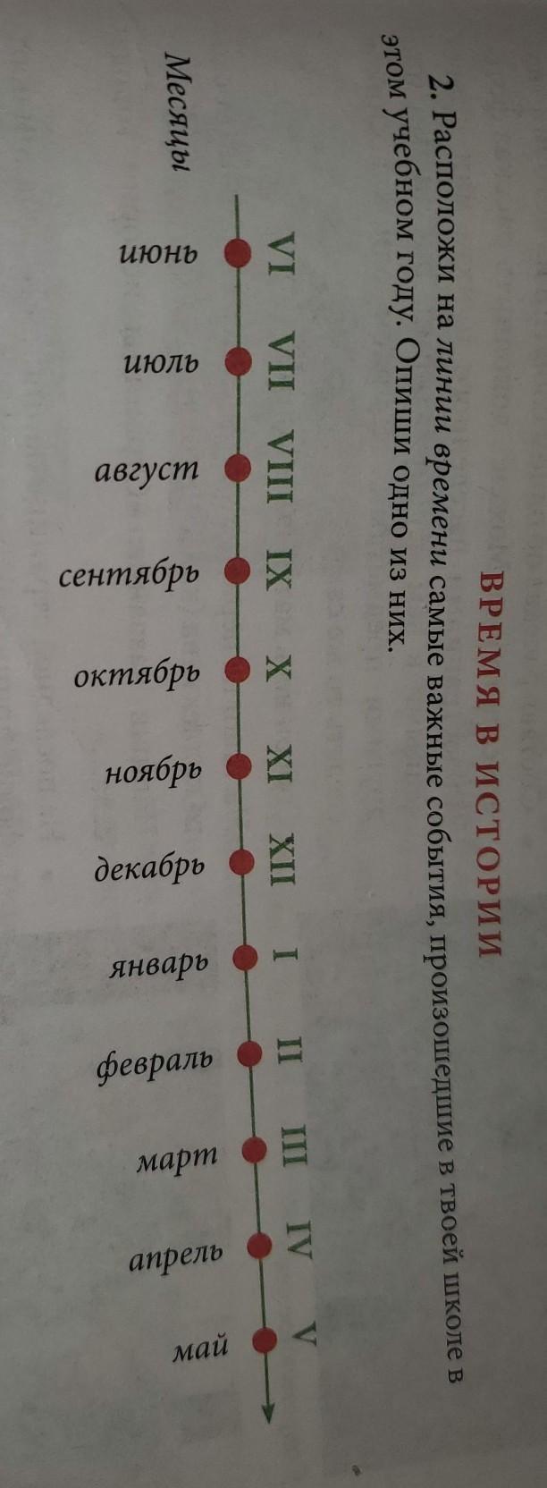 Сначала делаешь такую линию времени (месяца и римские цифры. линию делаешь как координатную в математике)