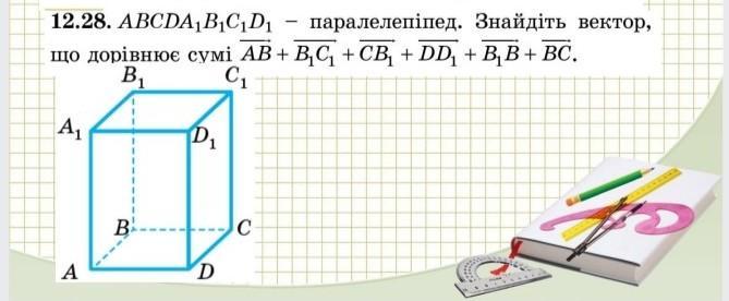 12.28. ABCDA1B1C1D1 паралелепіпед. Знайдіть вектор, що дорівнює сумі АВ + ВС + Св. + DD, + В, В+ ВС. В. с.