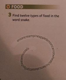 Ответ: Onion, cream, pineapple, lemon, carrot, wheat, chicken, cheese, mussels, jelly, cake, oats.