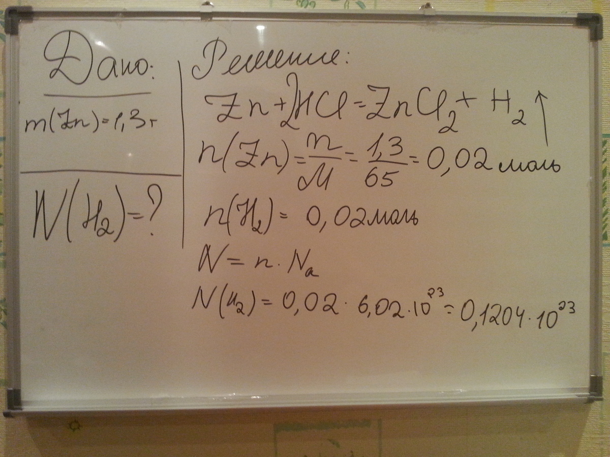 Опредилите число молекул водорода,которое вы делится при взаимодействии 1,3 Г цинка с серной кислотой