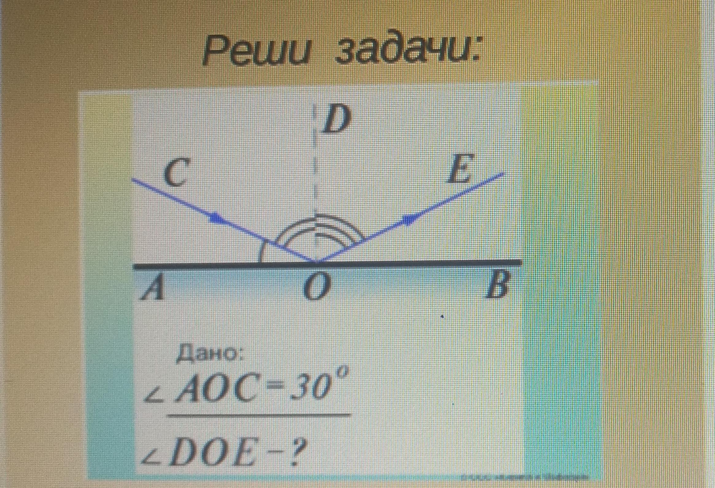 Угол ДОЕ=углу СОД=90-30=60 гр. Получите за Ваши 5 баллов))