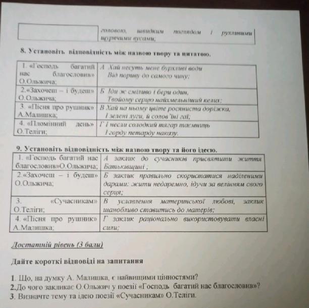 1.Я вважаю, що найвищі духовні цінності у творах Андрія Малишка – це любов до матері.