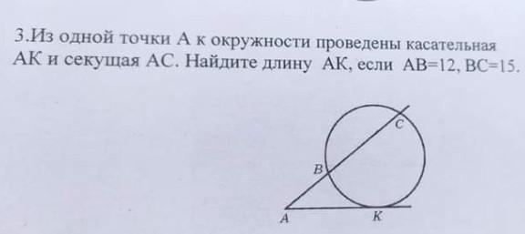 AK²= AB × AC= 12 × (12+15)= 12 × 27= 324