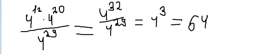 Помогите пожалуйста 4 в 12 степени умножить на 4 в 20 степени (дробная черта) снизу 4 в 29 степени