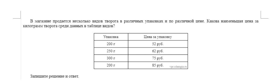Ответ: наименьшая цена за 1 кг творога - 248 руб.