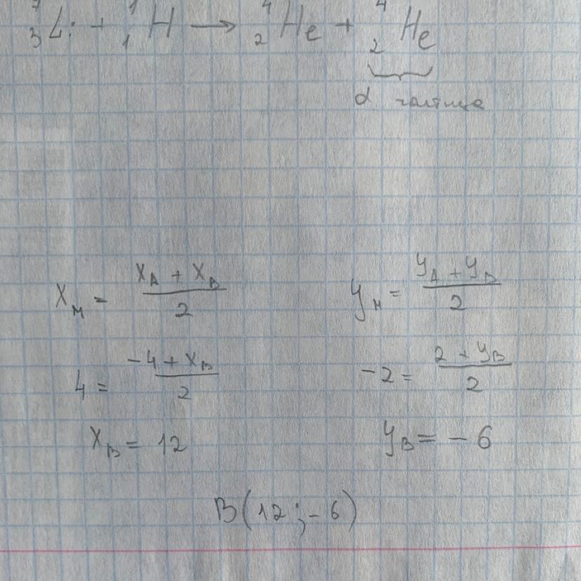 2) Найдите координаты точки В, если даны координаты следующих точек: А(-4; 2), M(4; -2) – середина отрезка AB