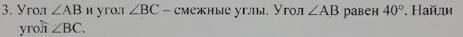 Свойство смежных углов - их сумма равна 180 градусам. BC=180-AB=180-40=140