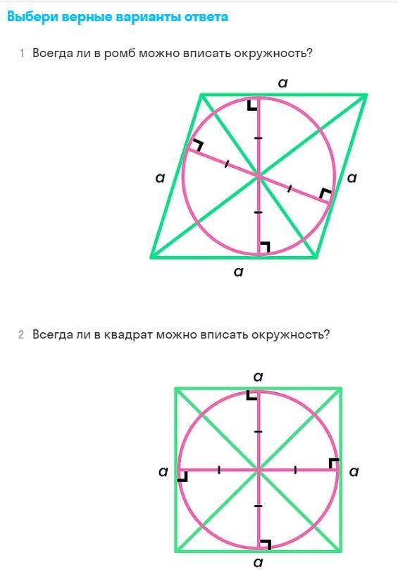 2)В четырехугольник окружность можно вписать только в том случае, если суммы его противоположных сторон одинаковы