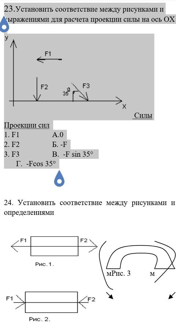 23.Установить соответствие между рисунками и выражениями для расчета проекции силы на ось ОХ