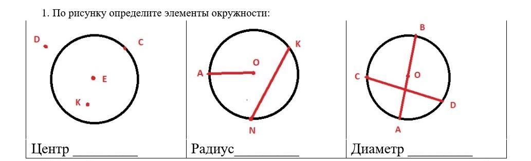 1. По рисунку определите элементы окружности: В С K D N Центр. Радиус Диаметр