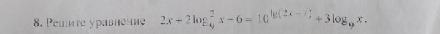 8. 2х+2㏒²₉х-6=10^(lg(2x-7))+3㏒₉х