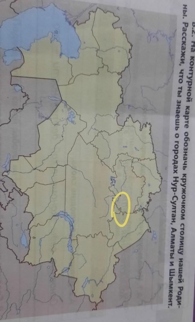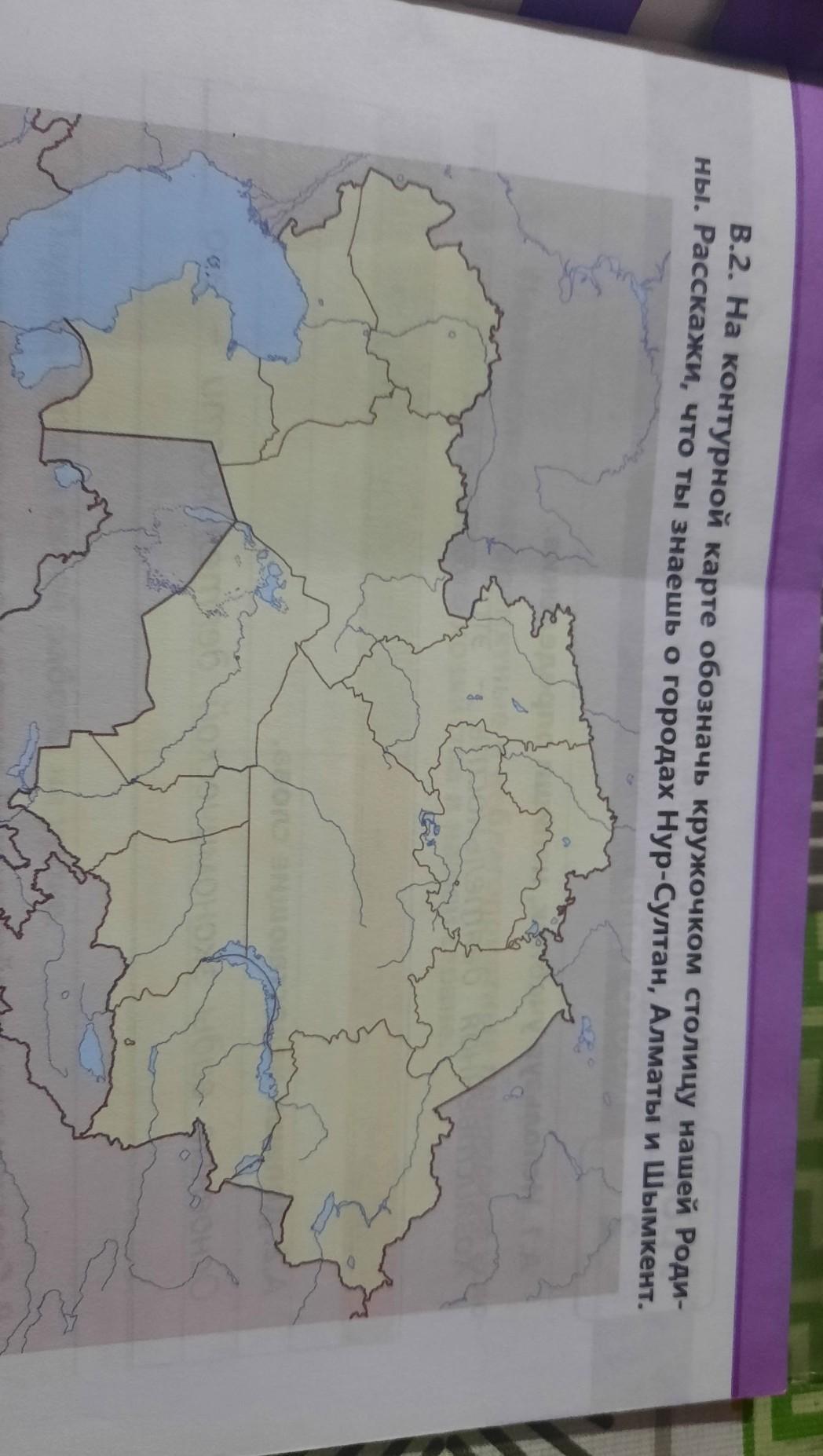 Г В.2. На контурной карте обозначь кружочком столицу нашей Роди- ны. Расскажи, что ты знаешь о городах Нур-Султан, Алматы и Шымкент. пж на фото отметьте:●