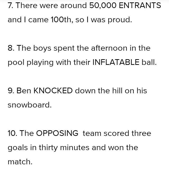 Whizzed, knock, entrants, technical, opposing, spectator, addicted, originated, physical, bizarre, inflatable, enthusiasm, bounce