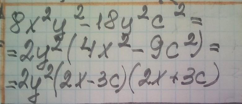 8x²y²-18y²c²=2y²(4x²-9c²)=2y²(2x-3c)(2x+3c)