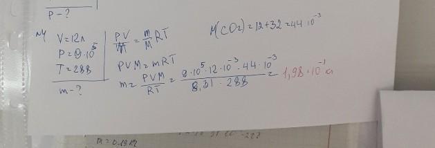 В сосуде объемом 12 л содержится углекислый газ под давлением 9×10^5 Па и температуре 288 К. Найти массу газа.