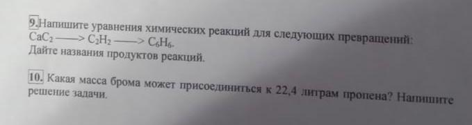 9.Напишите уравнения химических реакций для следующих превращений: CaC2 C₂H₂ — С.Н. Дайте названия продуктов реакций.