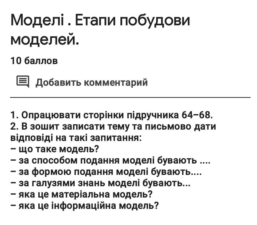 Інформаційна модель — це модель об'єкта, подана у вигляді опису.