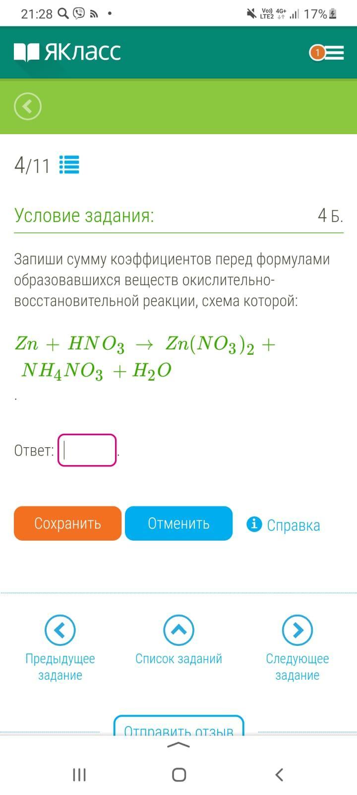 сумма коэффициентов образовавшихся веществ 4+1+3=8