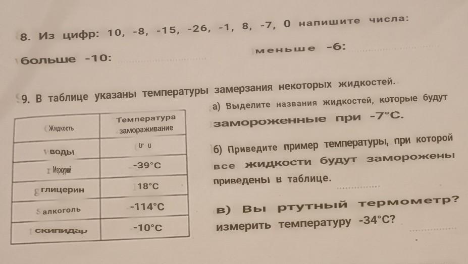 9. в списке именно при минус семи таких нет. но вода замерзает при нуль градусов. значит. при -7 град. и подавно будет заморожена. так же и глицерин