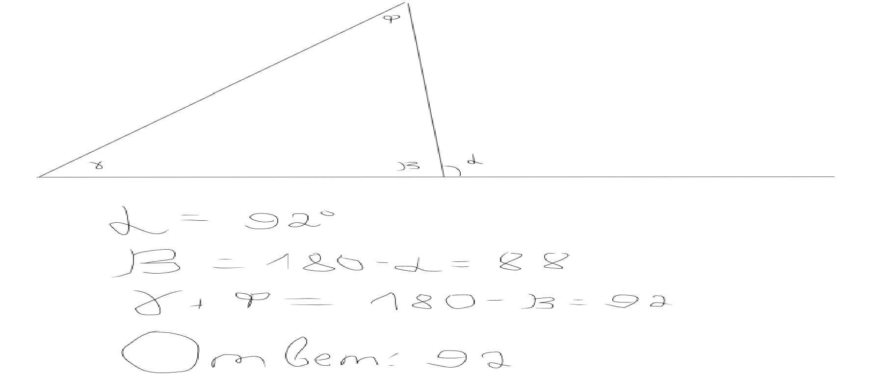 Один из внешних углов треугольника равен 92. Чему равна сумма двух углов треугольника,не смежных с ним?