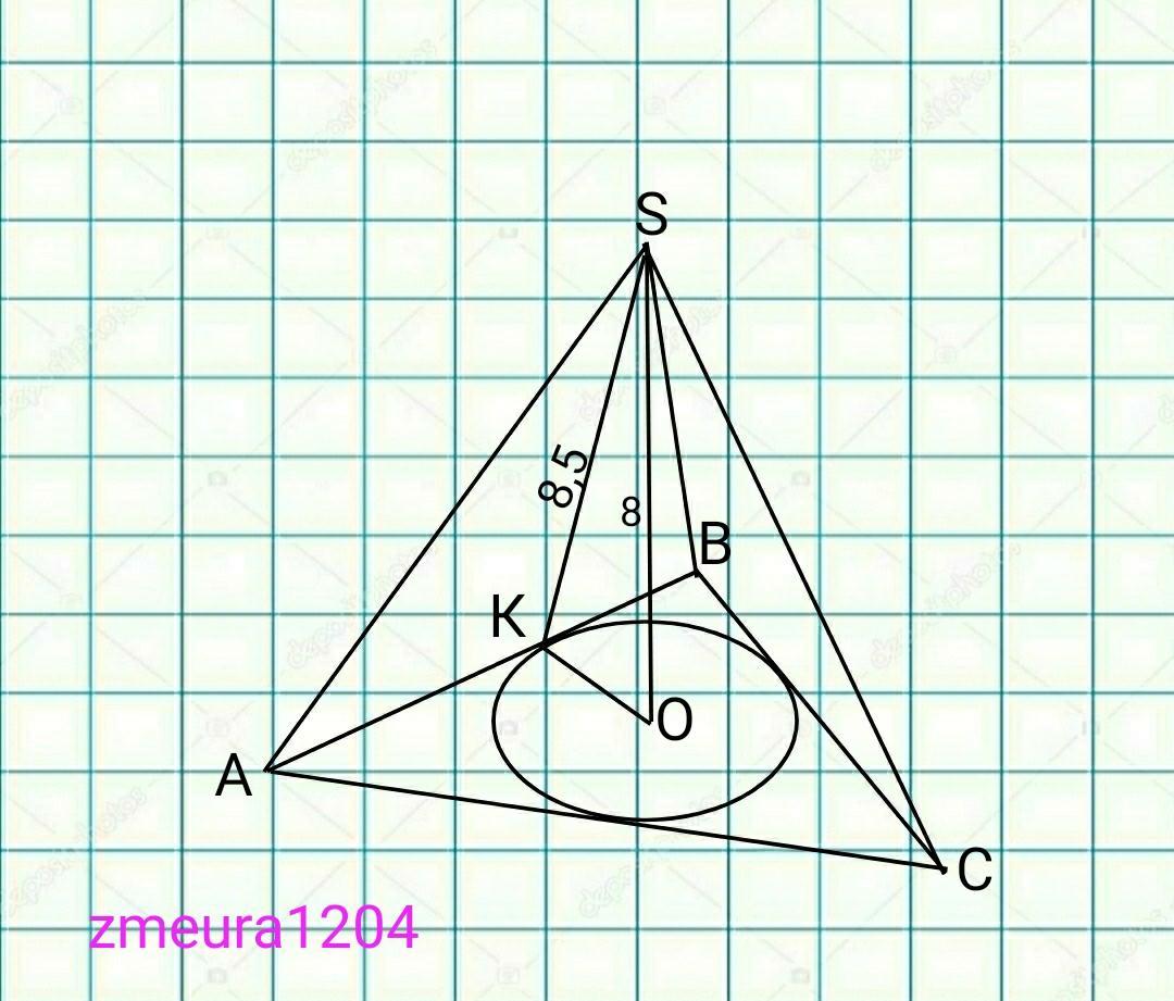 КО=√(SK²-SO²)=√(8,5²-8²)=