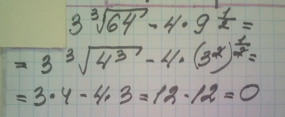 Знайти значення виразу 3³√64-4*9½