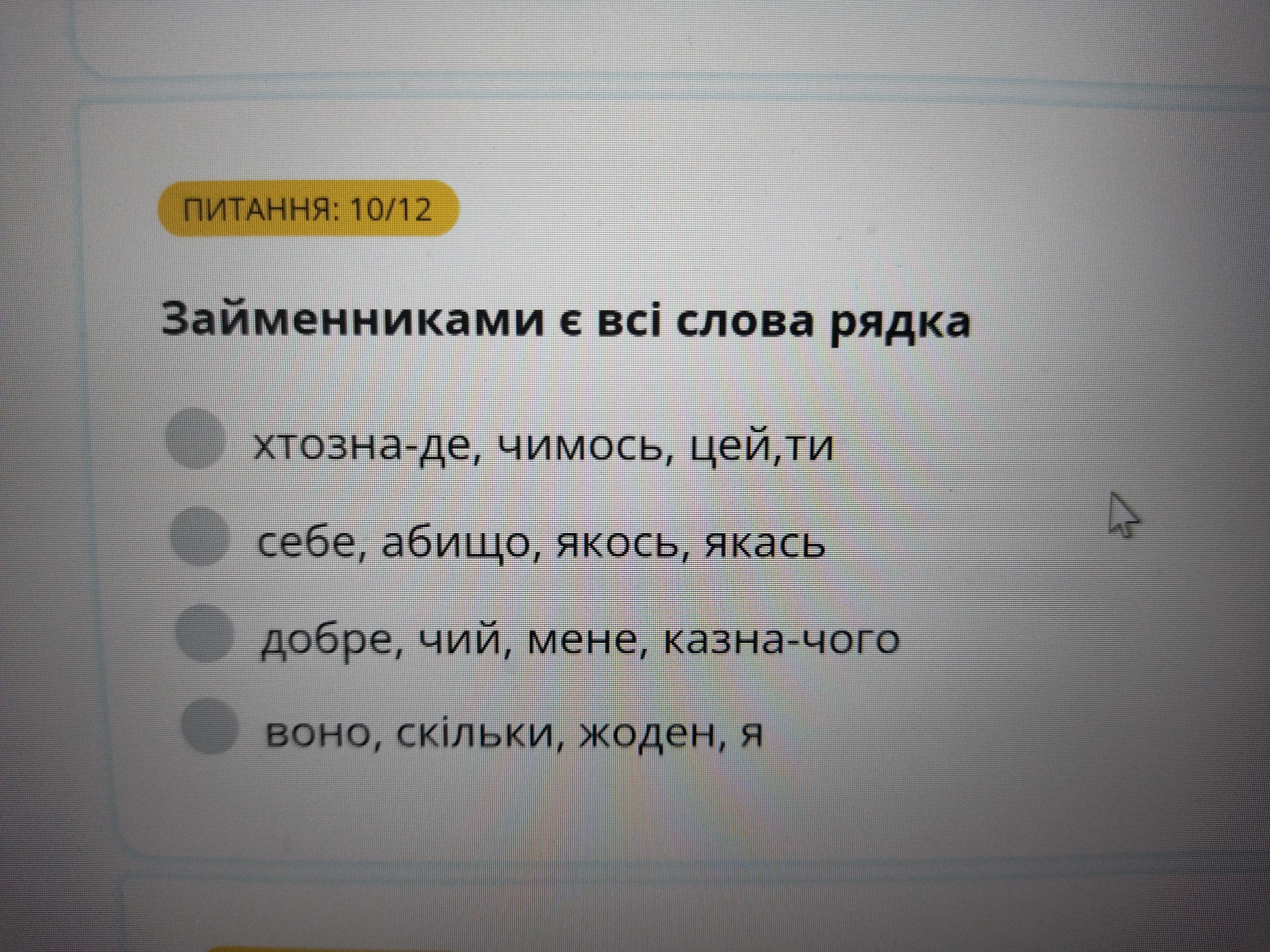 Правильна відповідь: хтозна-де, чимось, цей, ти